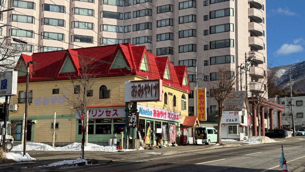 ここは苗場スキー場から徒歩で10分くらいの場所にある、お土産や軽食が買えるお店です。