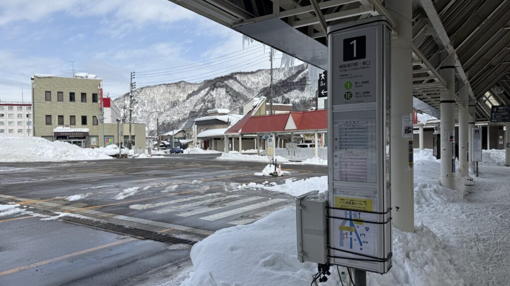 バス乗り場は先に紹介した路線バスと同じ、JR越後湯沢駅の東口。