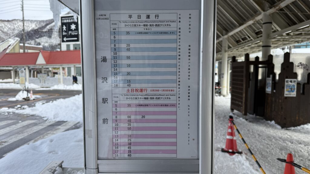 こちらは急行以外の通常便が停まりますが、こちらも詳しい時刻表などは南越後観光バス公式サイトから確認を願いします◎