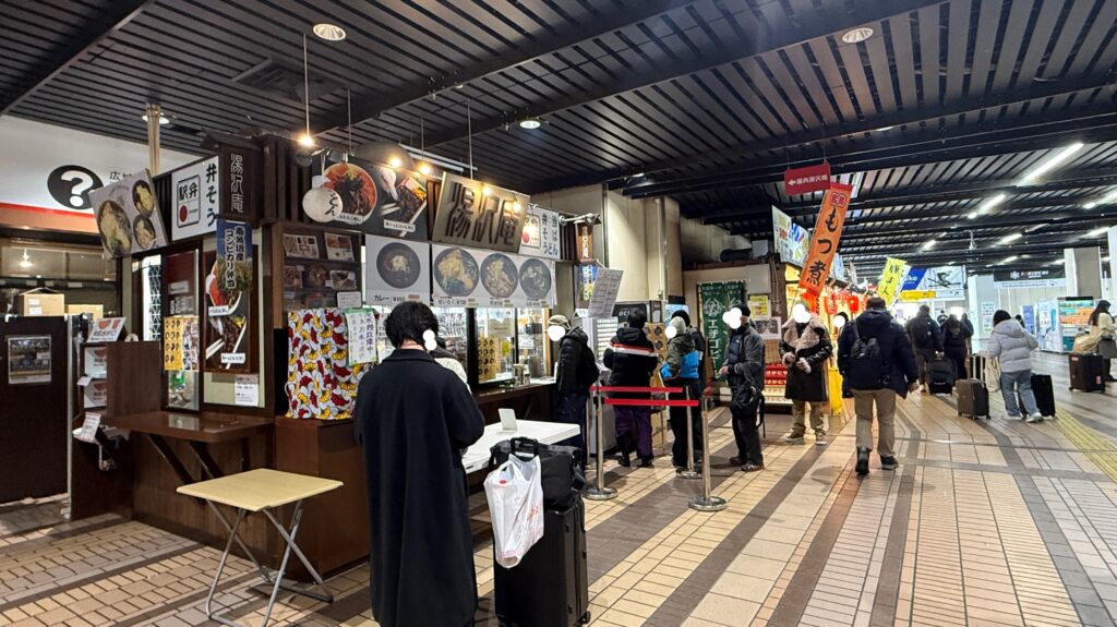 ほぼ全部のお店で列ができている印象なので、もし駅でランチをしようと考えている方は時間には余裕を持って来た方がいいです。
