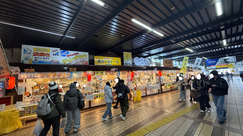 スキーやスノボのハイシーズンや年末年始、それ以外でも週末などは駅の中が人でごった返す時間帯があるので、その点だけ注意の上で駅ナカグルメ楽しんんでみてくださいね~◎