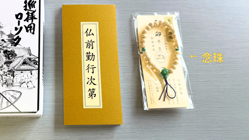 念珠は般若心経を唱える時に使用しますが、私も今回は買わずに法事用のものを使ったし、お遍路のためだけならこんな感じのも手軽に買えるし、↓↓ 現地調達でもいいと思います!