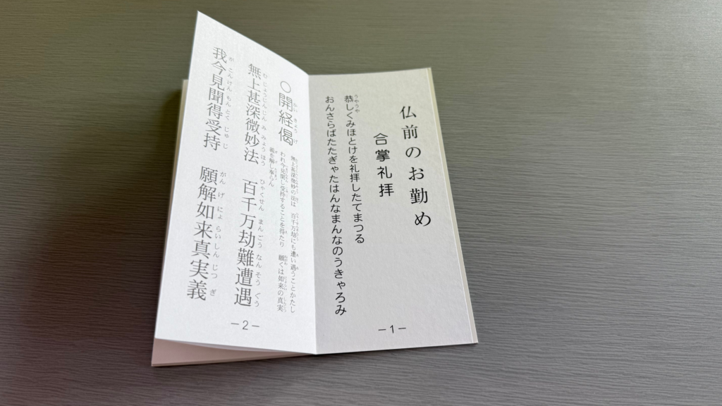 お賽銭を入れ、参拝したあとにこのお経を読みます。