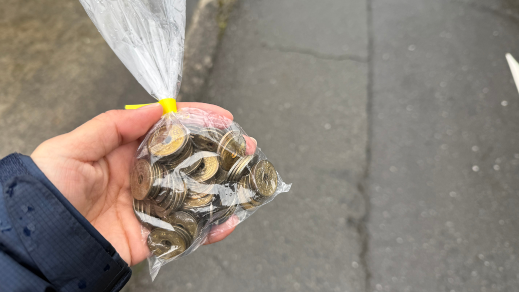 お遍路では88か所のお寺のお賽銭用に5円玉や10円玉などの小銭が大量に必要になります。