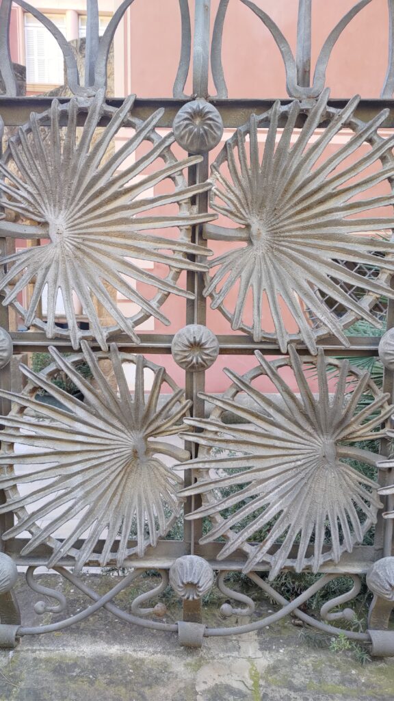 ↑↑ これはどっかの門だったか、柵だったか忘れちゃったんだけど貝殻のような、はたまた葉っぱにも見えるようなデザインが素敵でついパシャリ。