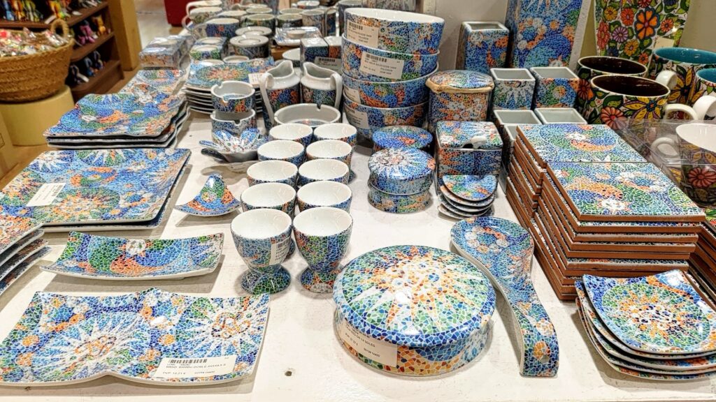 ↓↓ こんな感じのガウディ建設物のデザインの食器や雑貨があくさんあるから自分用にも、家族やお友達へのお土産探しにもいいと思いますが、本当に物量が凄くて時間がかかるのでじっくり見たい方は滞在時間に余裕を持って行ってください!!