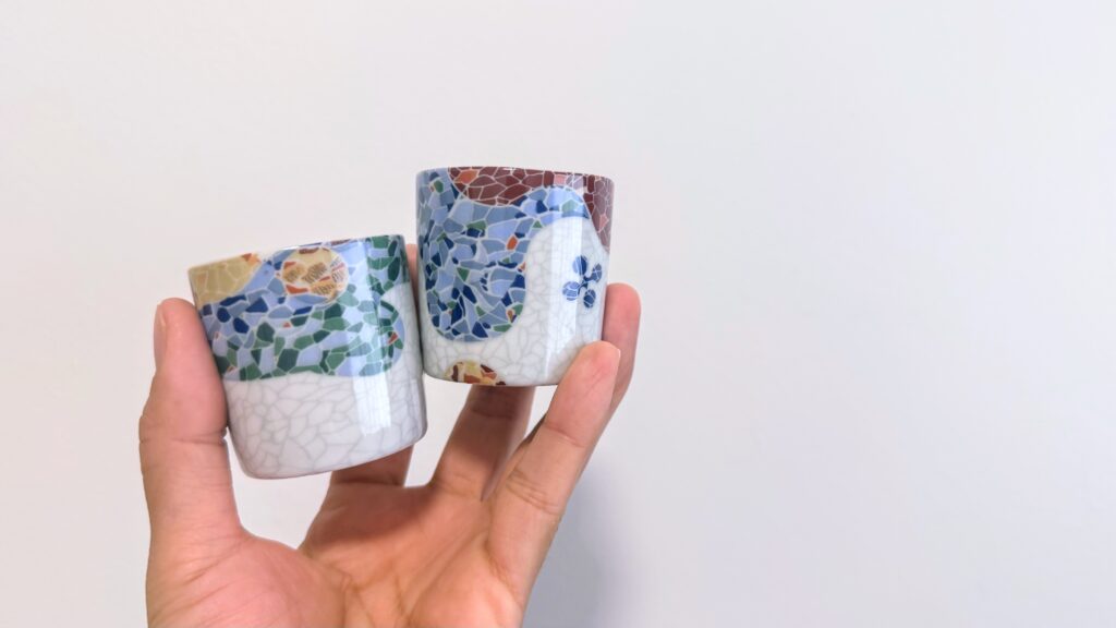 グエル公園にある波型ベンチのタイルをモチーフにしたようなデザインのお猪口!